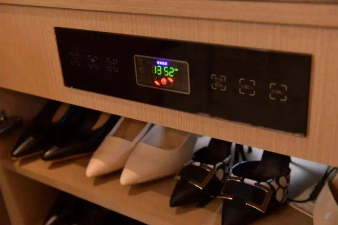 第一道屏障是玄关消杀系统▷,项目配置鞋柜精灵,健康祛味除臭、恒温烘干除湿除潮,保证室内整洁清爽。