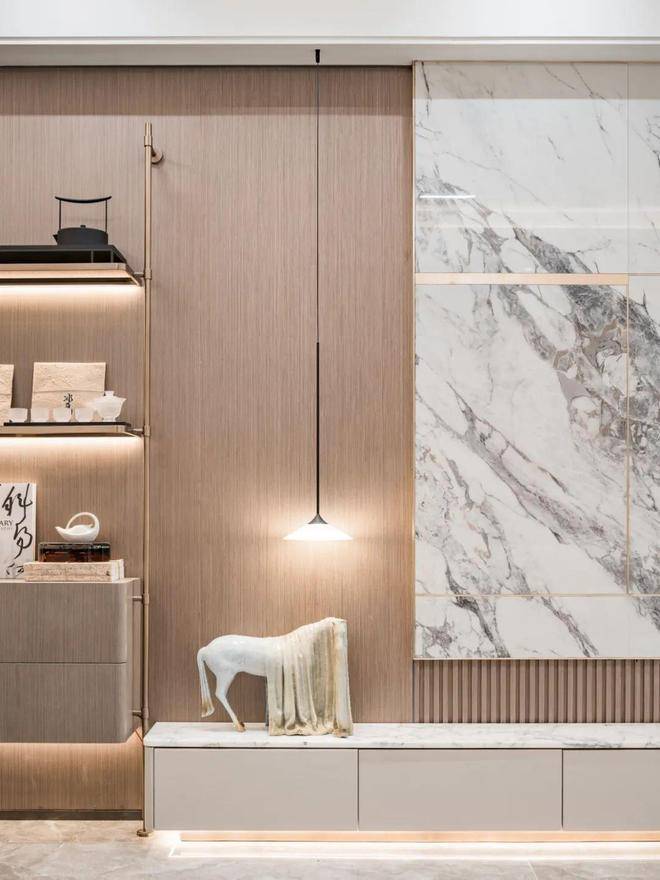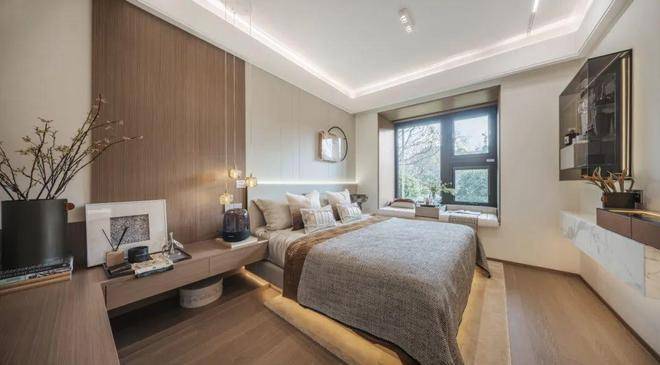 为此项目精选钢木复合门■、臻选雅艺壁布、自然木饰面▼-、全景一体化岩板背景墙等精奢材质○●▪,搭配充满仪式感的氛围灯带、打磨移门、踢脚线、过门石等每一处细节◆■★。同频全球当代极简审美的艺术美宅呼之欲出!